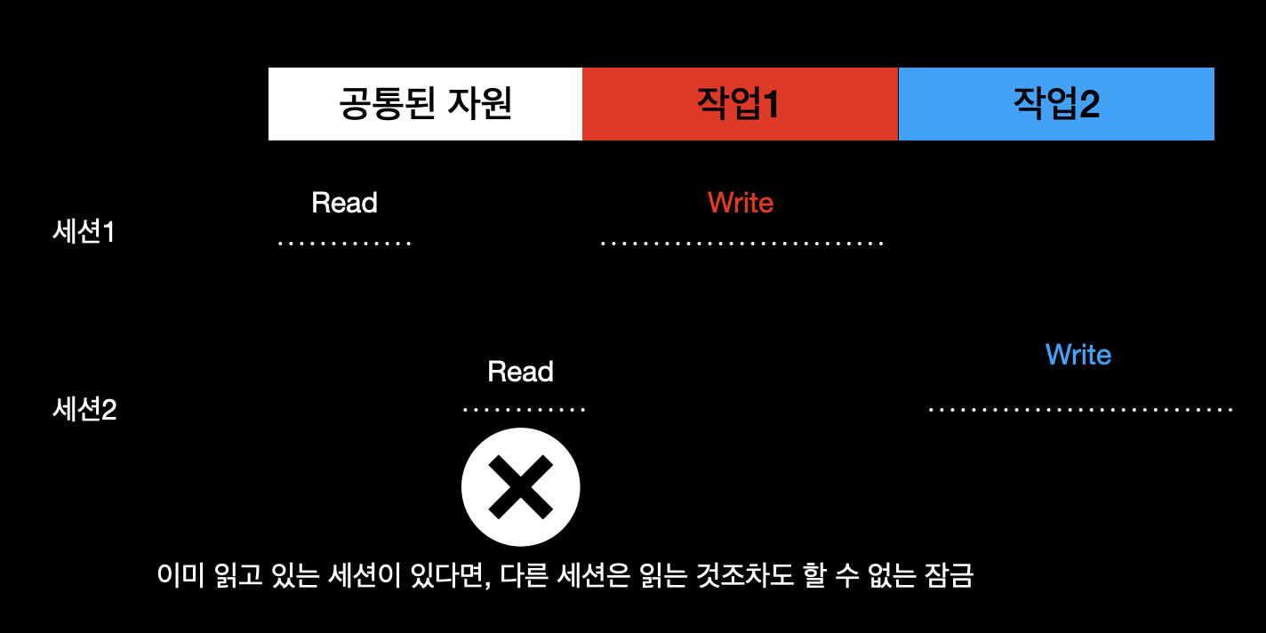 - 엔티티를 영속 상태로 올릴 때부터 다른 세션에서 조회하지 못하도록 잠금을 걸어둔다.