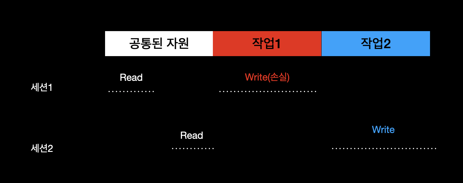 동시성 문제란 두 개 이상의 세션이 공통된 자원에 대해서, 모두 읽고 쓰는 작업(Read -> Write)을 하려고 하는 경우 발생할 수 있는 문제를 가리킨다.